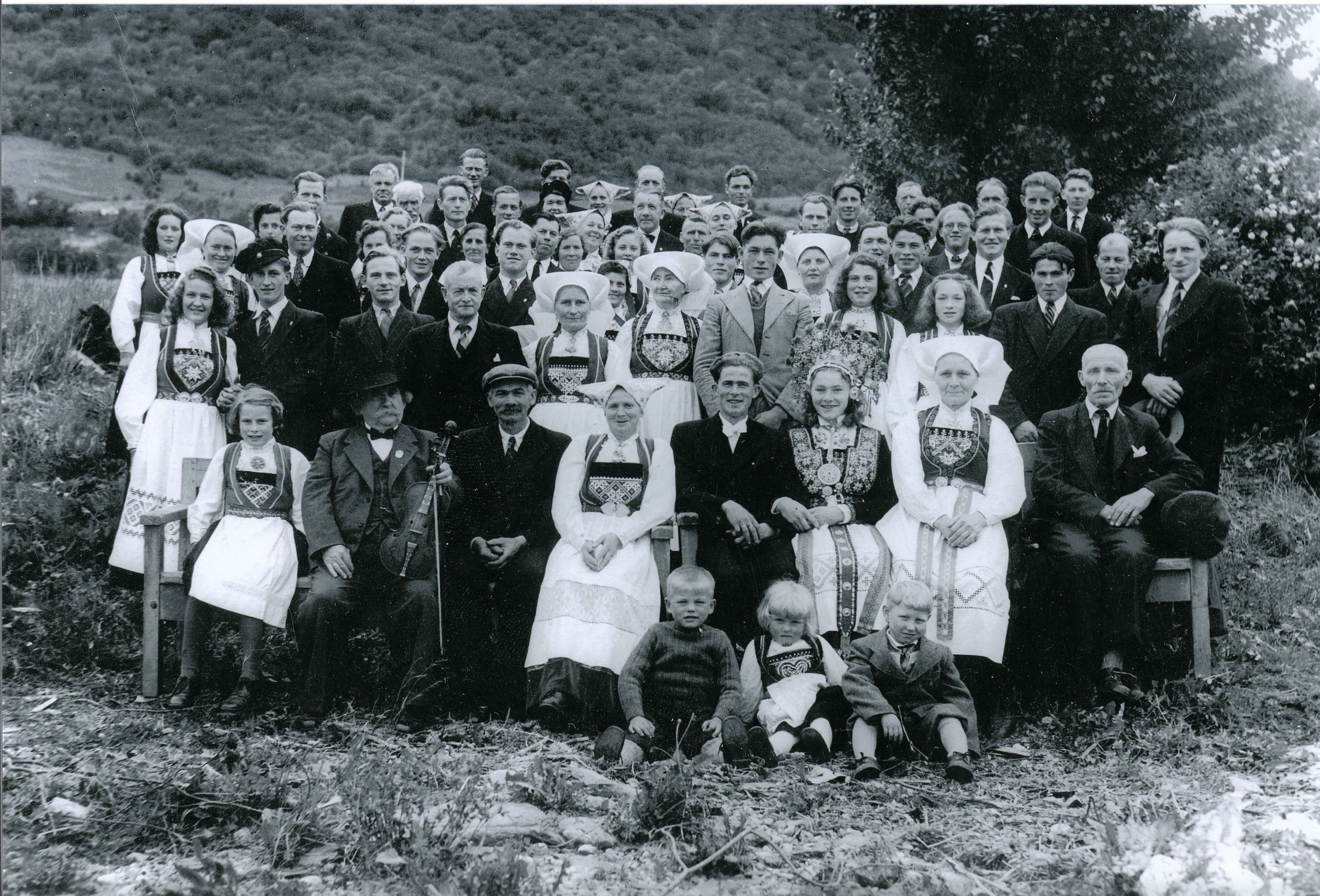 Spelemann i bryllaupet var Magnus Dagestad. Fotograf: ukjend. Eigar av original: Anna Tillung Sjå namneliste over bryllaupsgjestene (plassering på biletet)